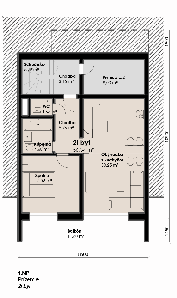 Bývanie s vlastnou garážou: 2-izbový byt typ „B“ (Nad Slatinou)